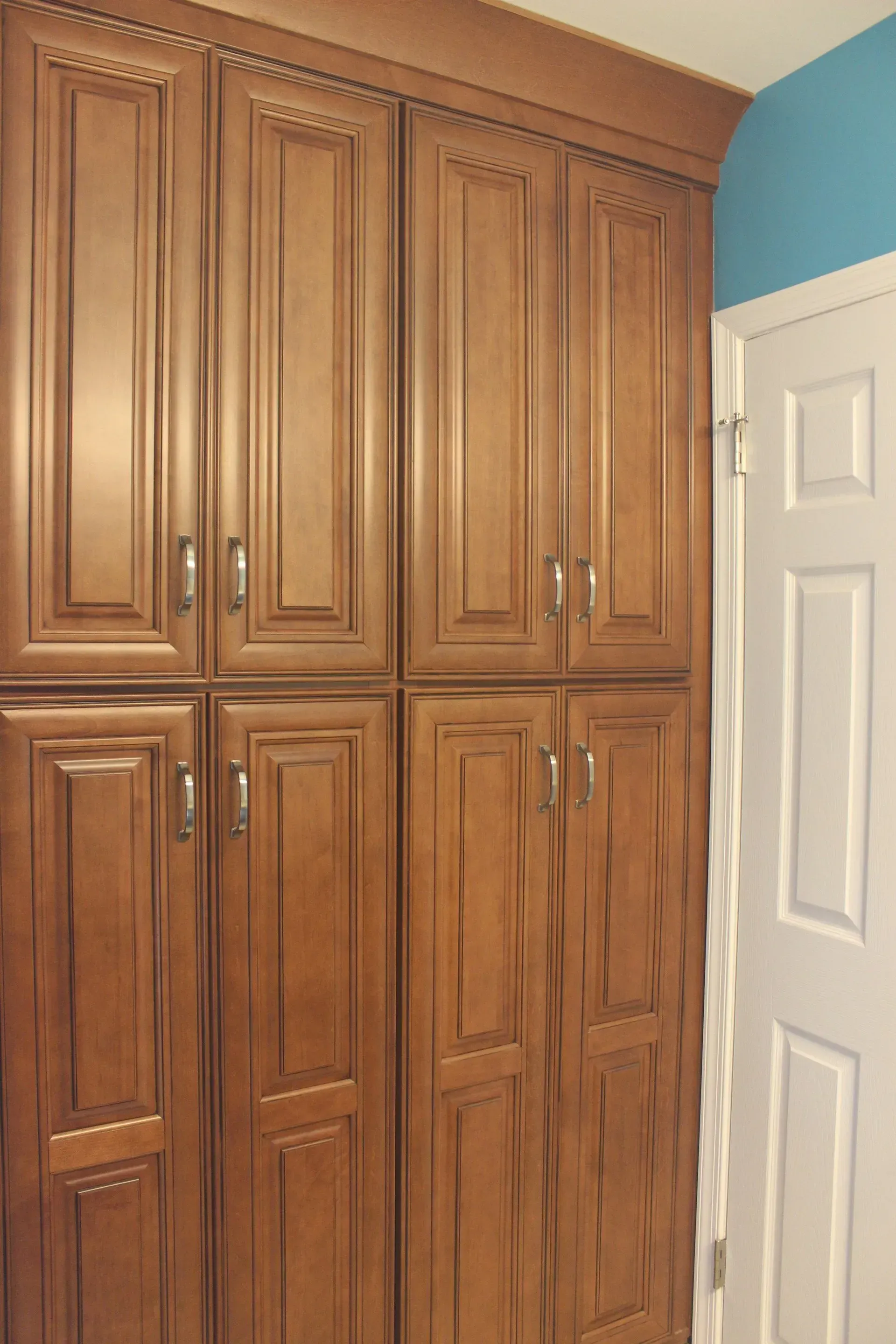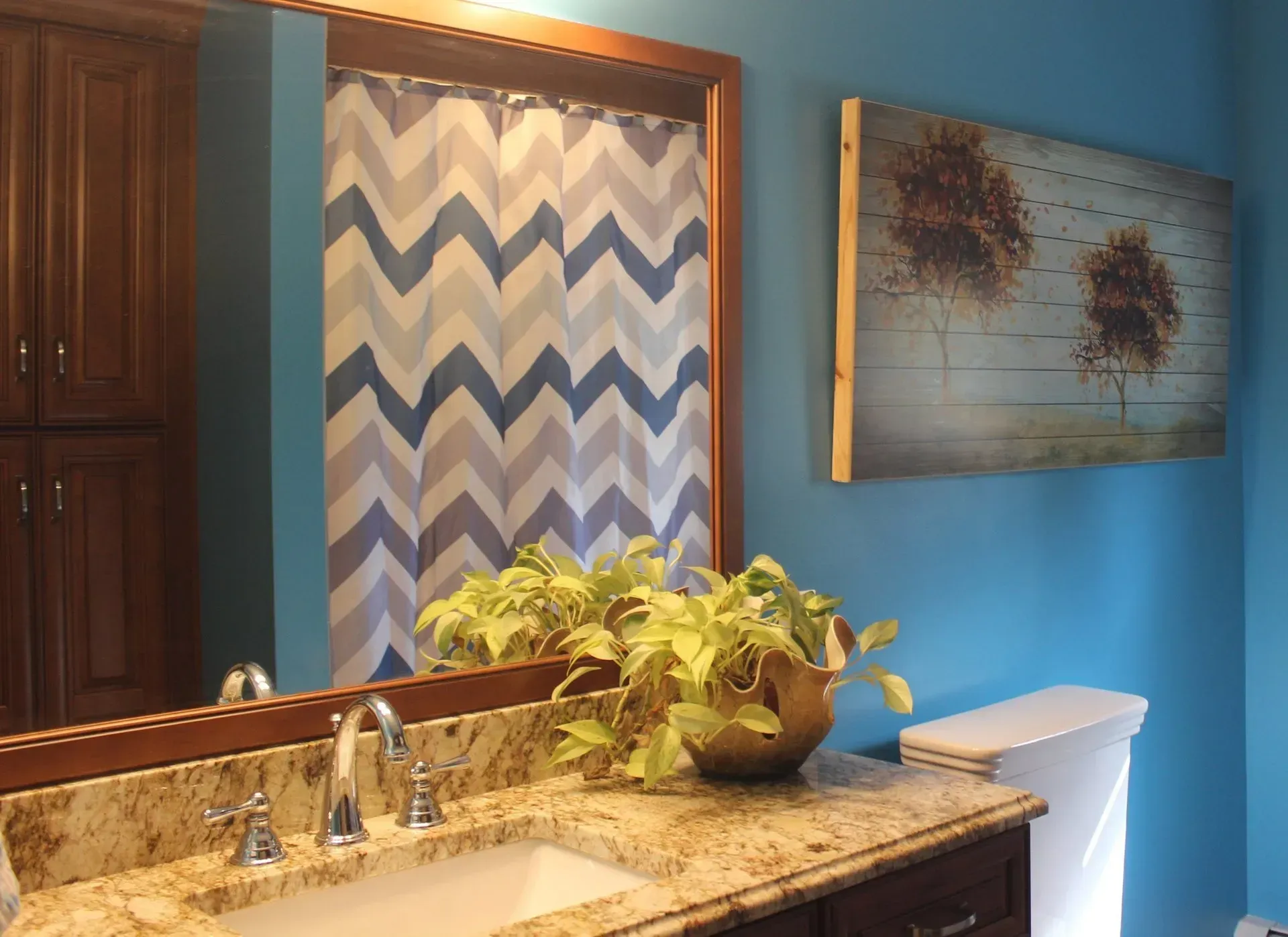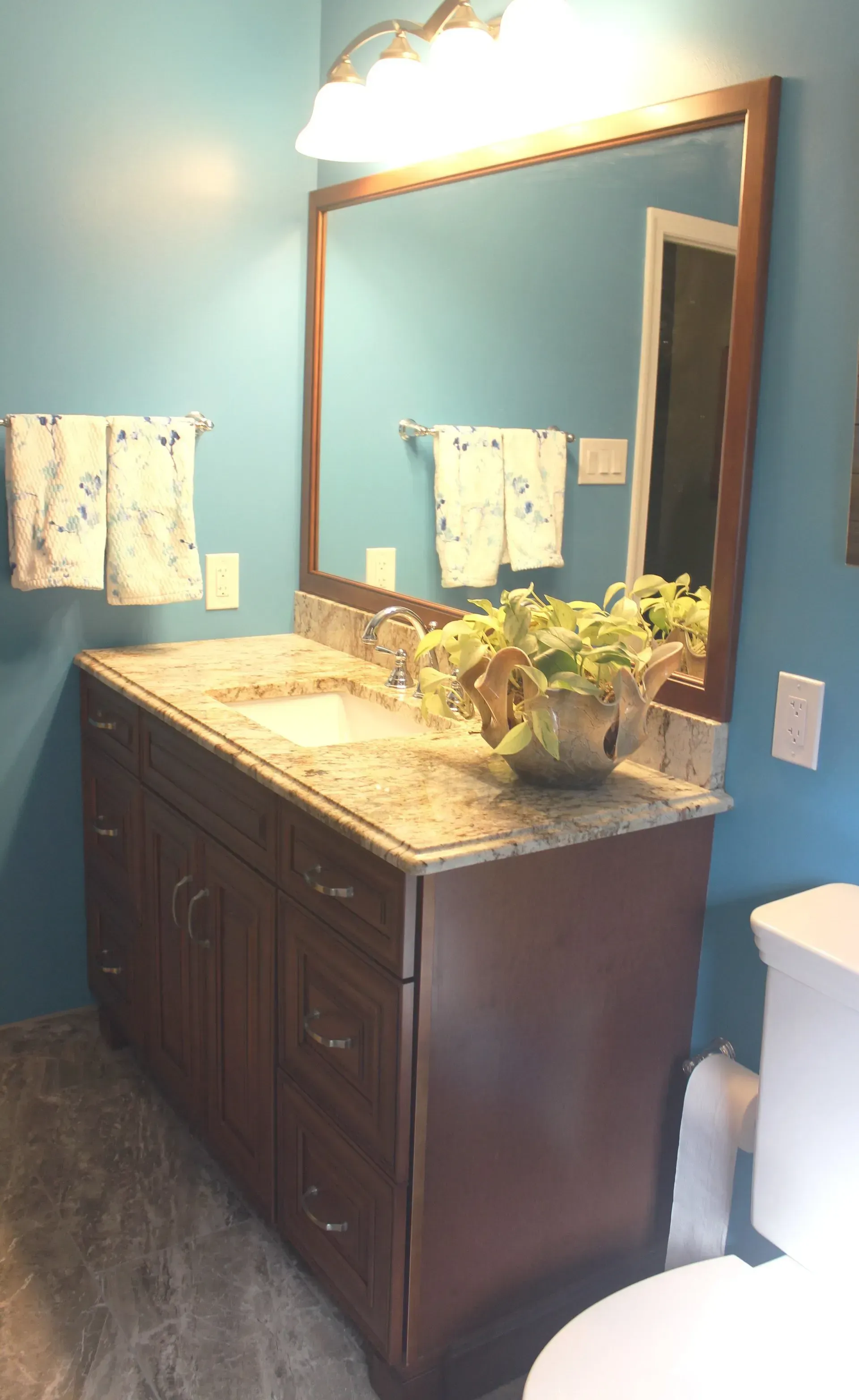This bathroom in Bucks County was remodeled with a new Waypoint Vanity, granite countertop, new tile in shower and 2 tall cabinets for extra storage space.