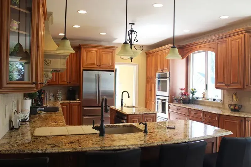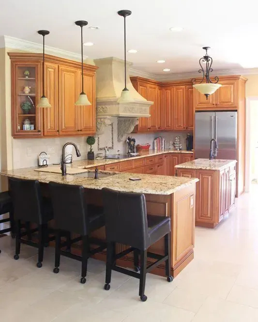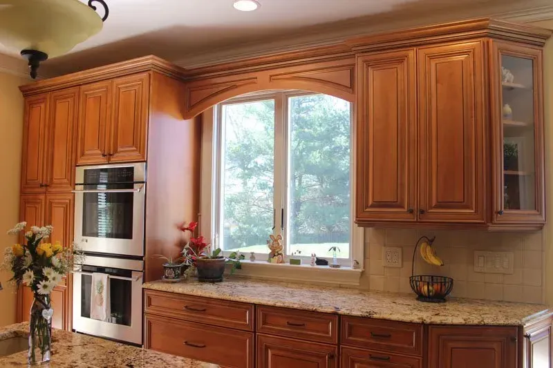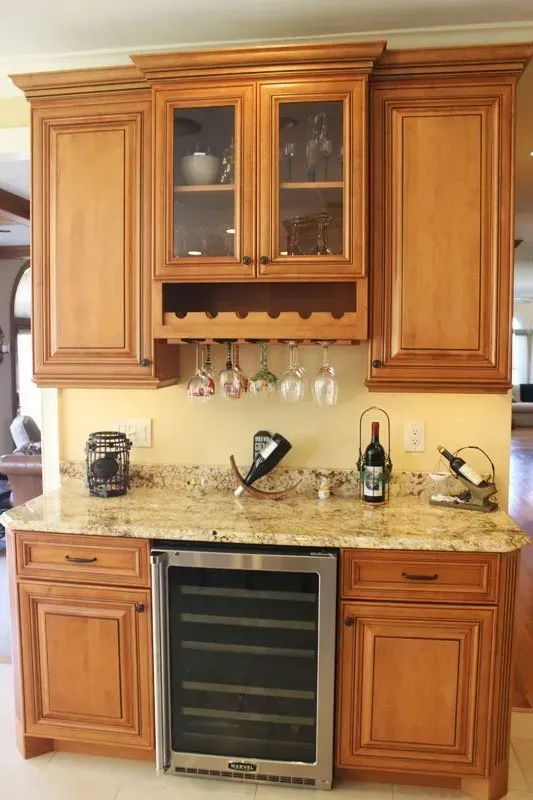 Dynasty by Omega cabinets in Maple Wood, with Ginger stain And Coffee glaze