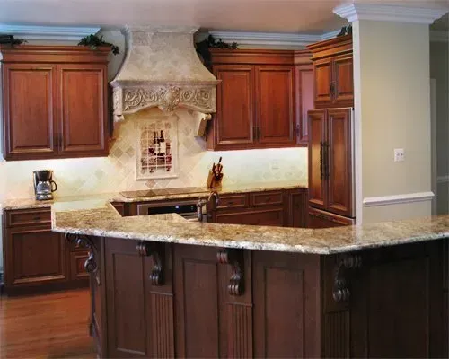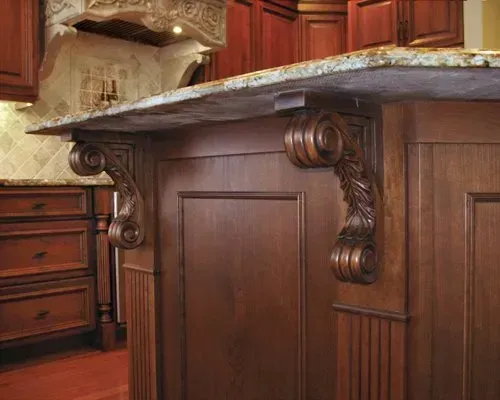 These elaborate corbels are an attractive way of adding extra support to the countertop.