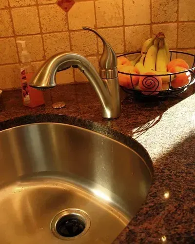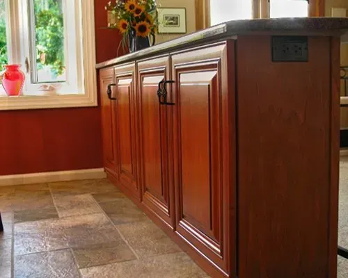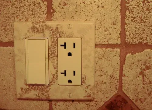 The outlet cover is painted to blend in with the backsplash