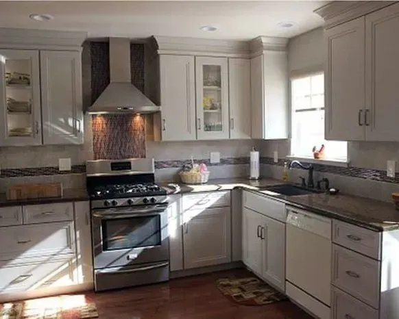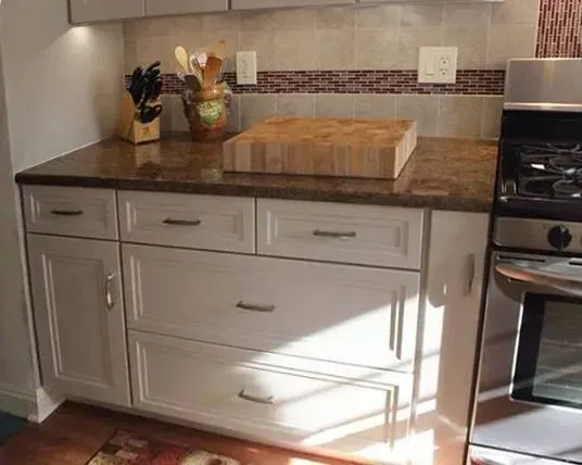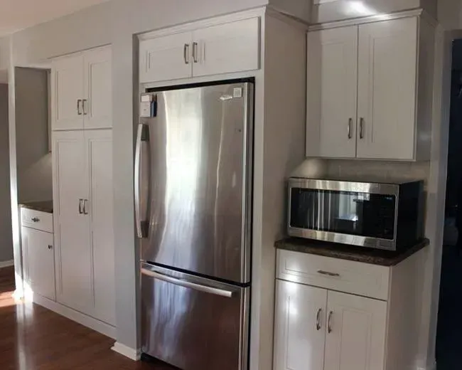 The pantry was dramatically transformed with the clients personal touches into a mini bar station and a pantry with pull out shelves.