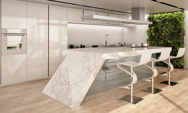 If the island will serve both as the focal point and primary workstation of the kitchen, durable and beautiful materials are an investment that pays dividends year after year. Quartz has gained in popularity in recent years because it is easy to maintain and three times harder than granite. Quartz is also one of the most durable materials used for islands, having the highest resistance to scratching, staining and heat damage. Granite and marble need to be sealed, polished and reconditioned over time. Quartz does not. It also is nonporous, nonabsorbent and offers zero emissions of volatile organic compounds or other emissions.