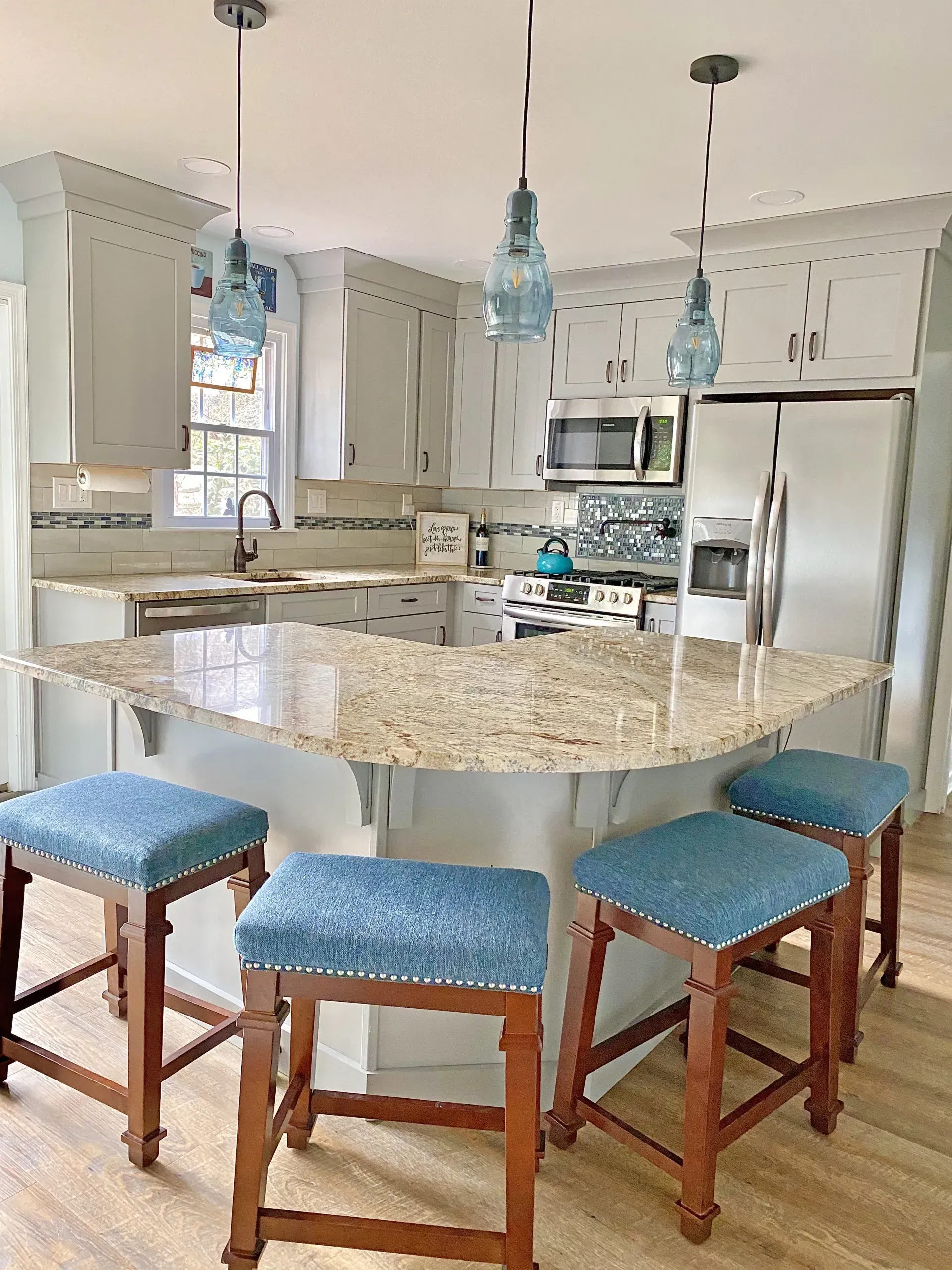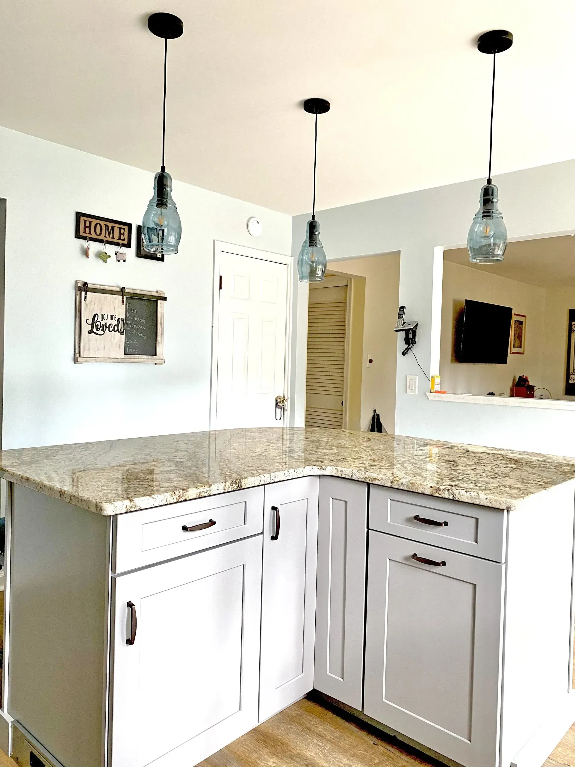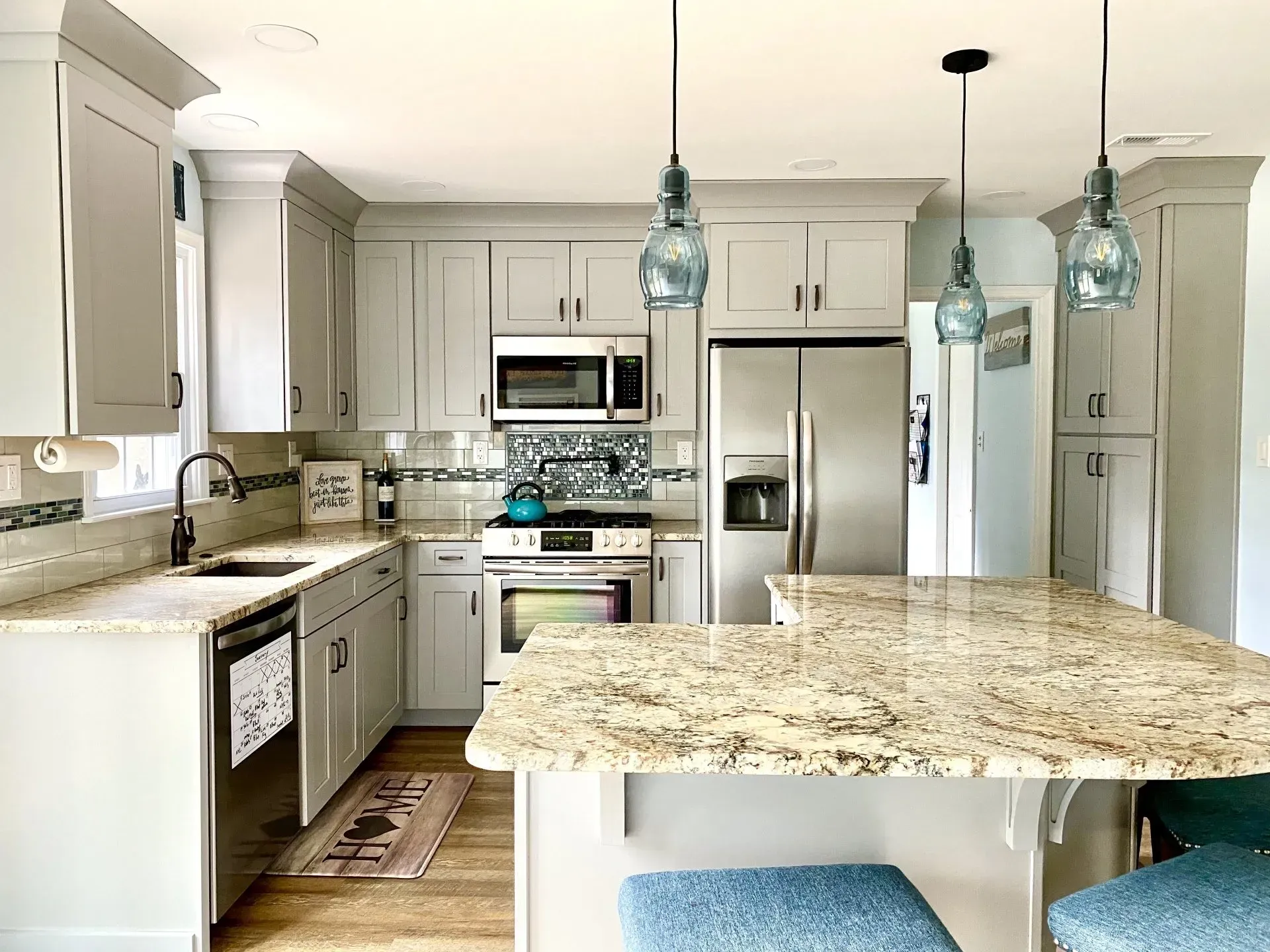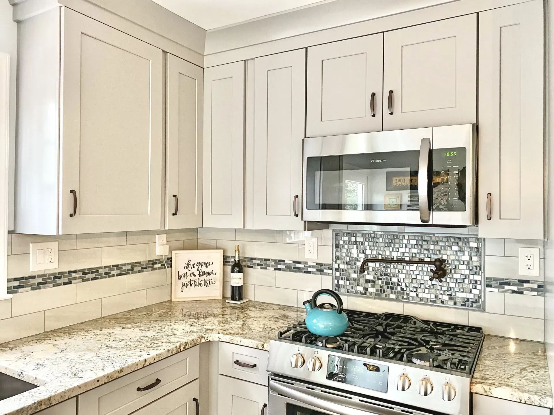 This kitchen in Lower Southampton, PA was updated with Waypoint Cabinets, Luxury Vinyl Tile Floor, granite countertops, and tile backsplash.