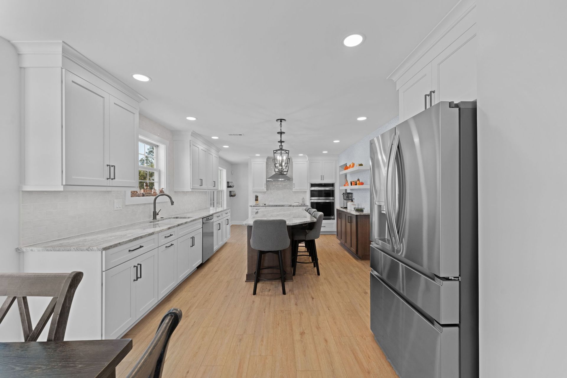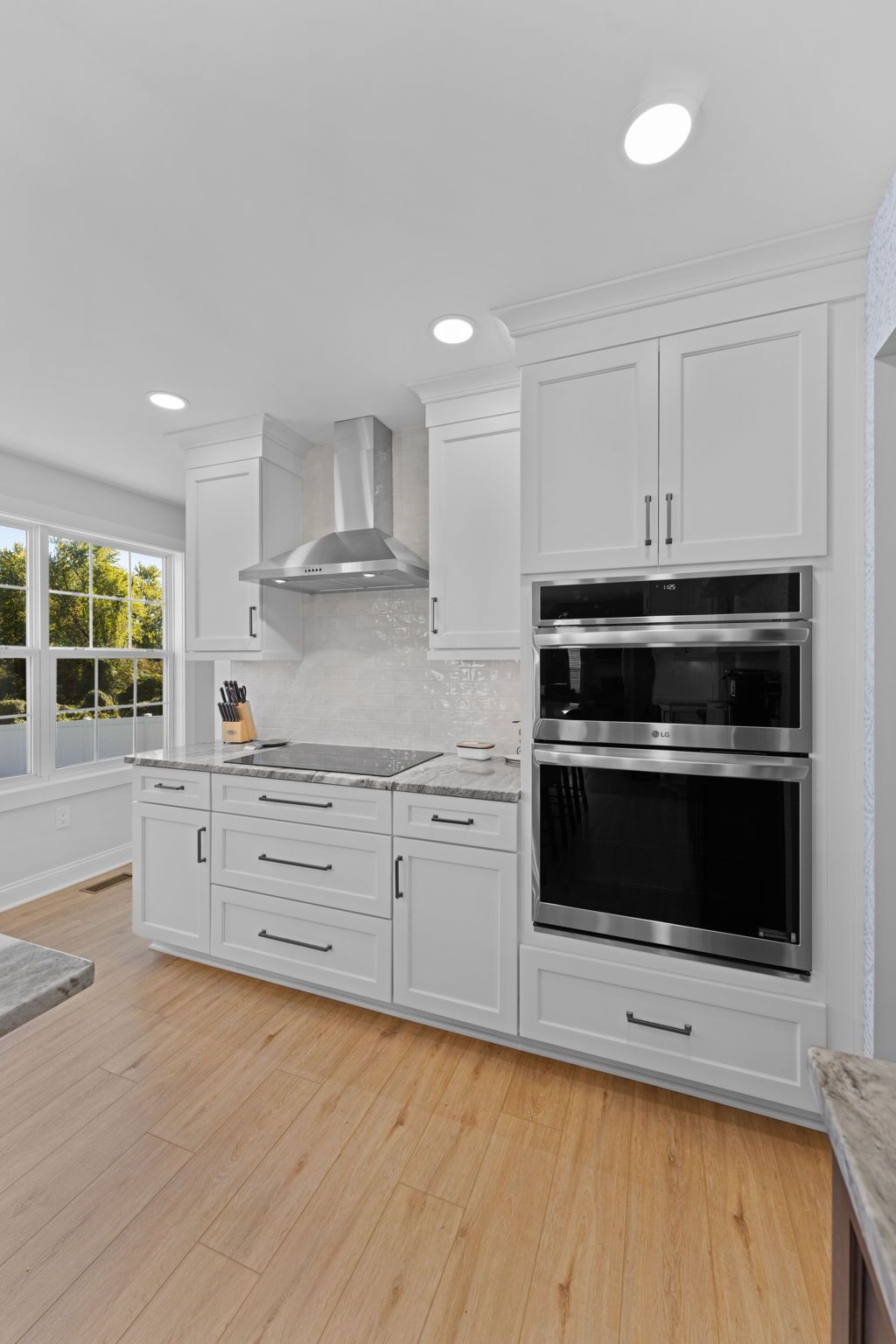 This Langhorne kitchen is The Real Deal, it turned out beautiful! It’s spacious, neat, and contemporary the way it uses more transitional cabinet styles but modern color themes. The before and after almost makes you think these images are from separate houses! The final cost for materials and labor came out to $117, 505, and our clients definitely got their money's worth. The kitchen doubled in size, creating space for island with 5 seats instead of zero, newly relocated appliances provide better function, and now there’s so much more space and storage for our clients to use. There’s better lighting as well, dimmable recessed lighting and under cabinet LEDs brighten the kitchen. The inclusion of the dining room’s window into this new design, leaving it unobstructed so both the pantry and kitchen could get sunlight was a brilliant move by their designer Andi. Another detail that was more subtle but still stood out to our clients was the outlet placement, instead of cutting into their backsplash we installed their outlets underneath their upper cabinets, so they were out of plain view but still easily accessible. When we went back after completion to take photos our clients had already filled their pantry and told us that they loved how open it was because then their kids and neighborhood friends could run in and out for snacks. Furthermore, the pantry serves as a place to store prepared foods during family occasions and does not crowd the island!