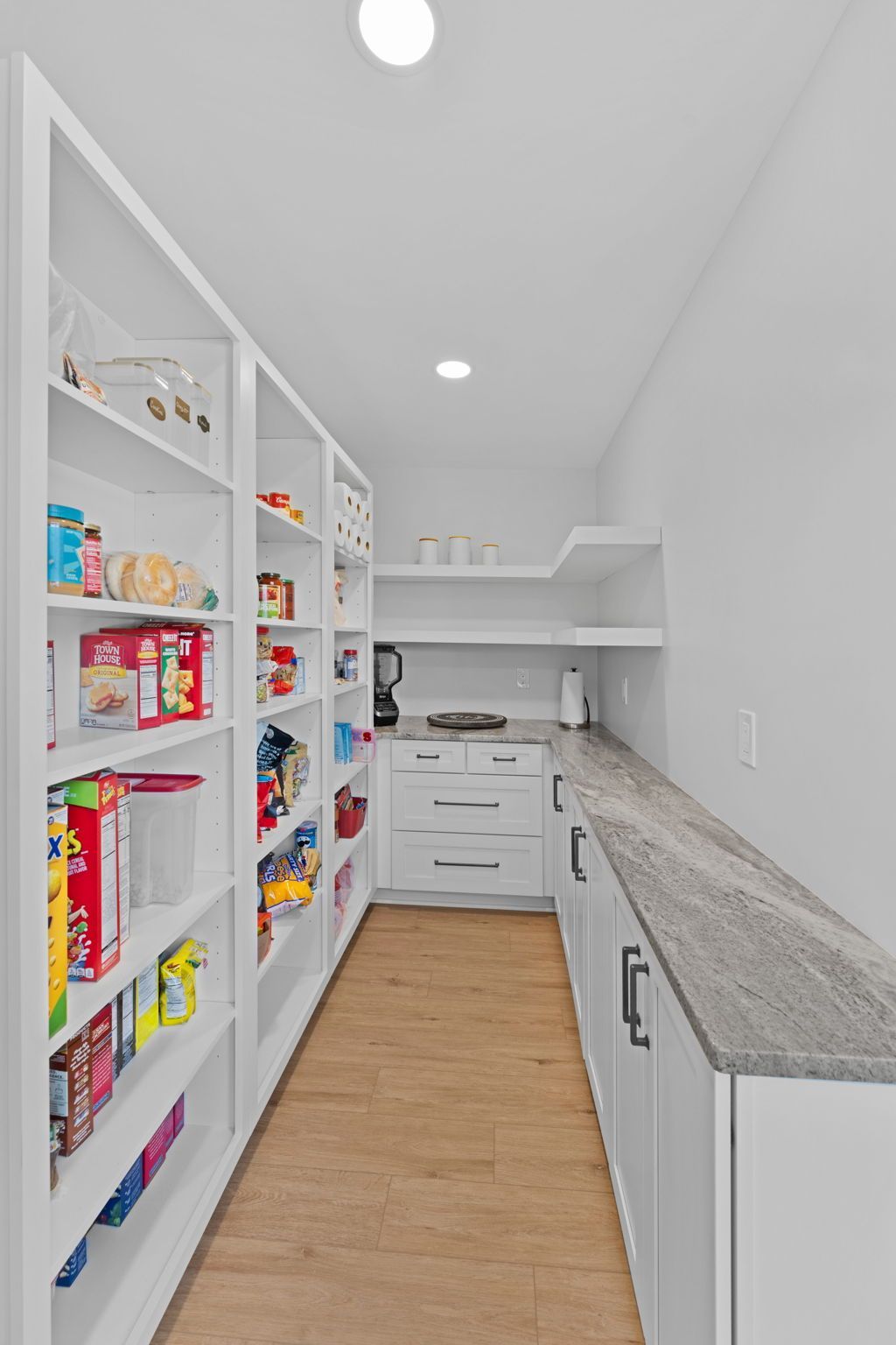 Pantry is Wellborn MDF painted Glacier, door style is Hancock