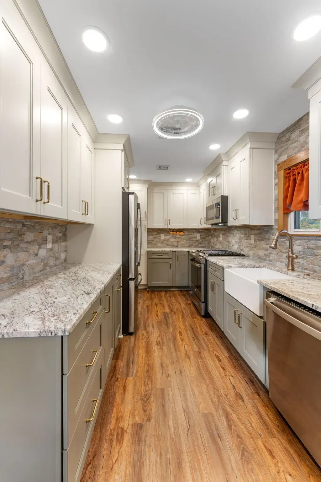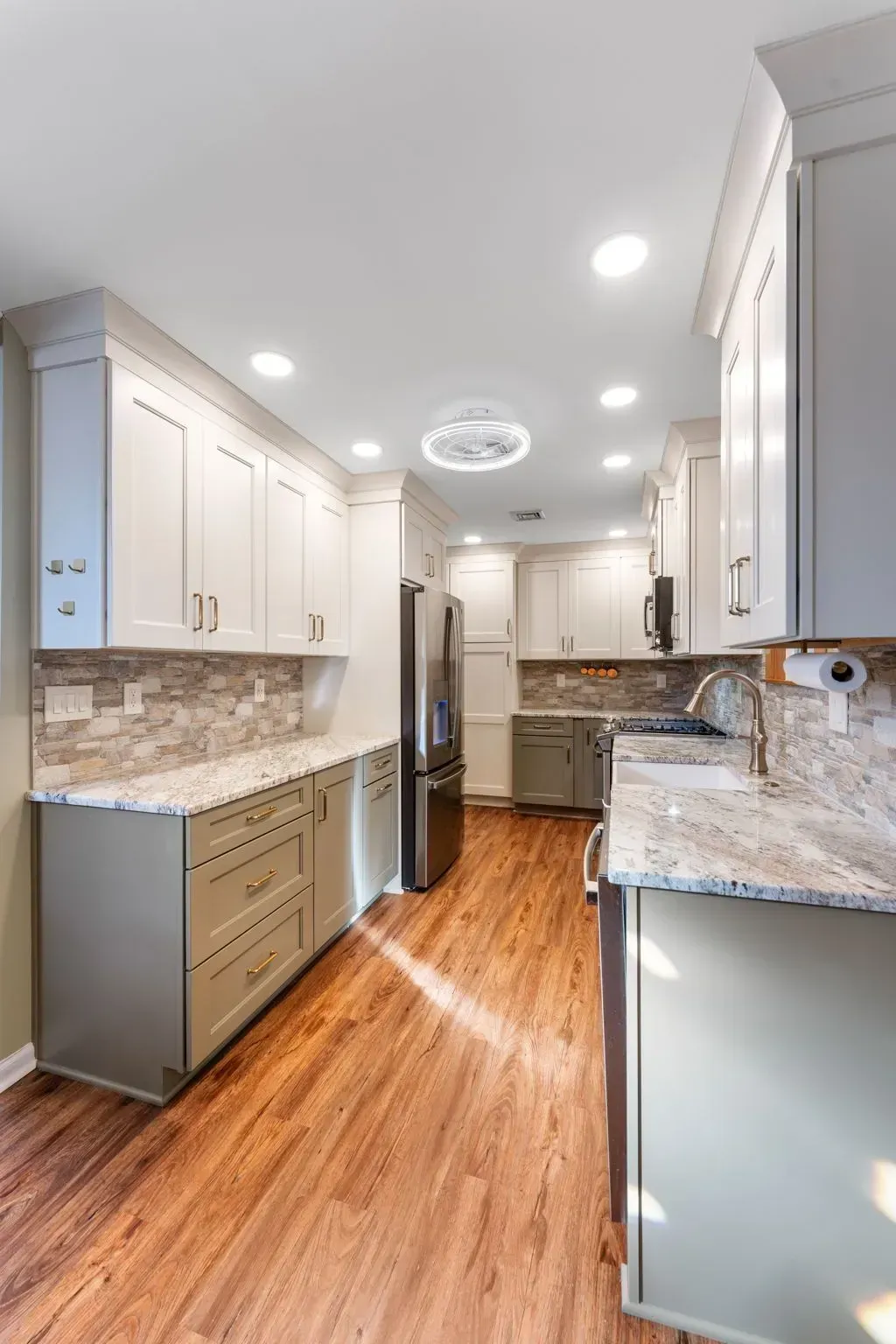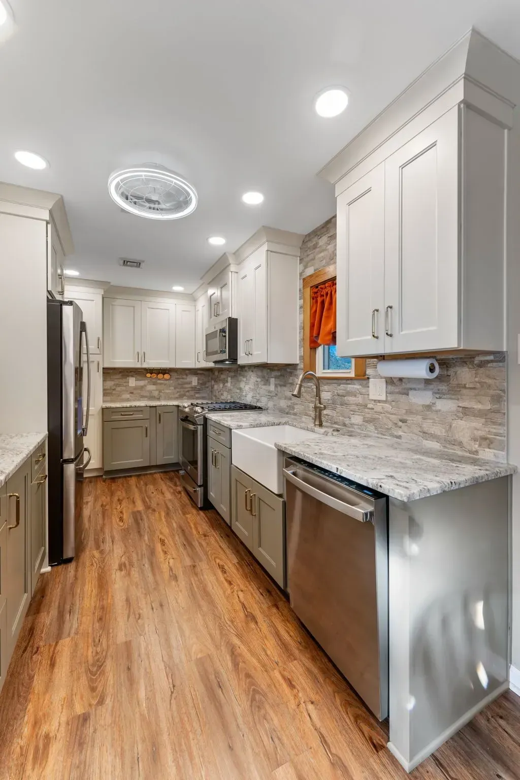 For this Morrisville, PA home, we relocated the laundry out of the kitchen by removing a chimney and installing a tankless water heater. To open it even more, we removed a wall to allow for better workflow and more counter space. This created a more open and efficient floorplan.