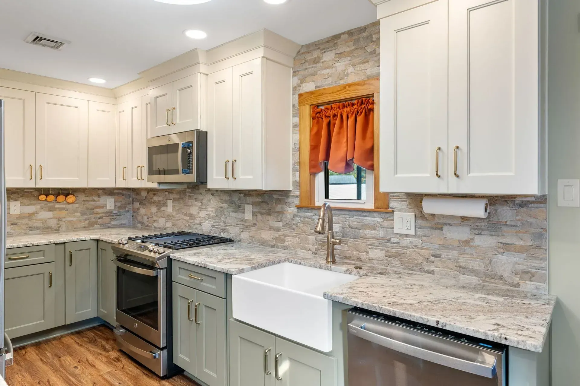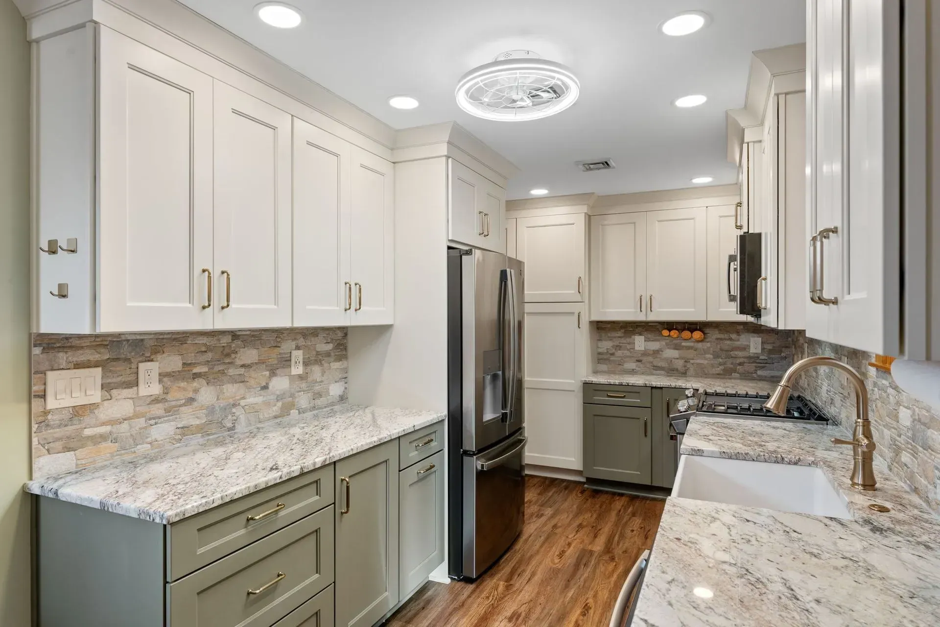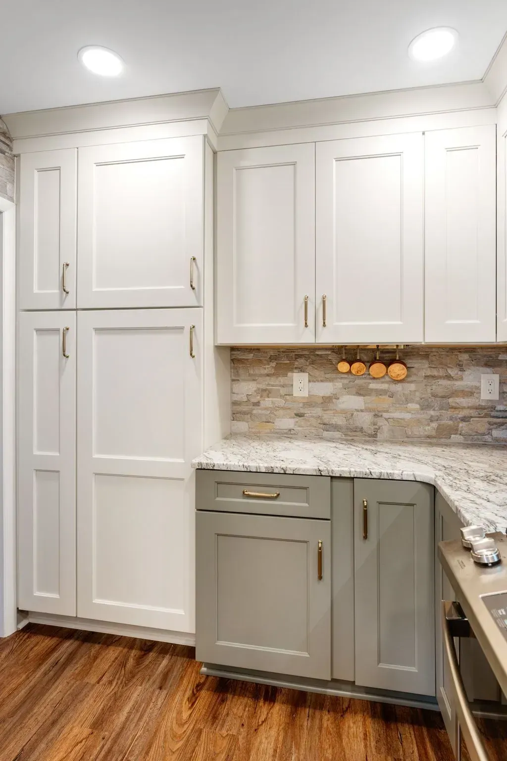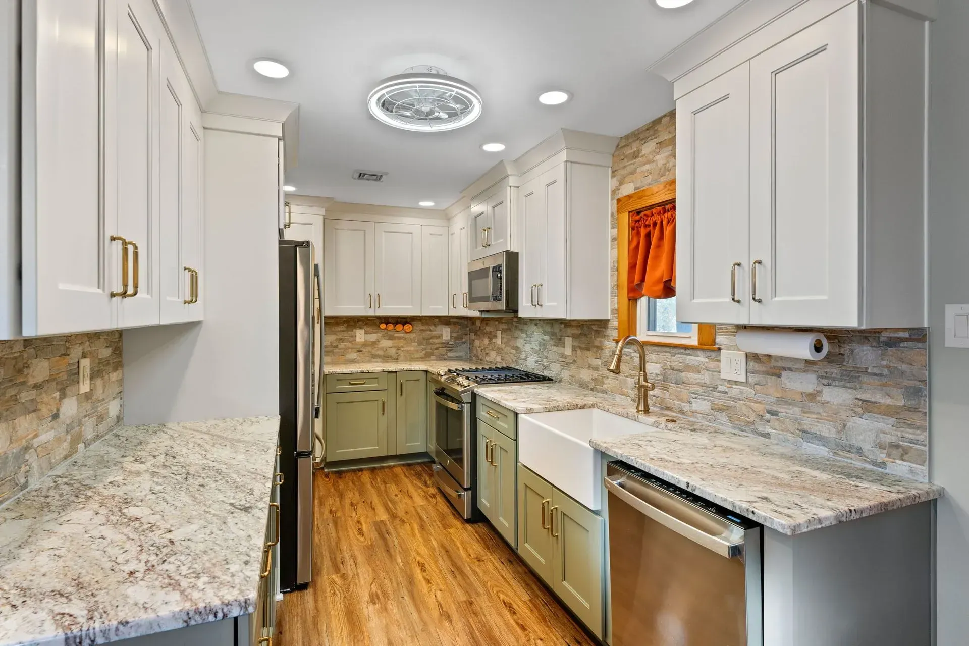 For this Morrisville, PA home, we relocated the laundry out of the kitchen by removing a chimney and installing a tankless water heater. To open it even more, we removed a wall to allow for better workflow and more counter space. This created a more open and efficient floorplan.