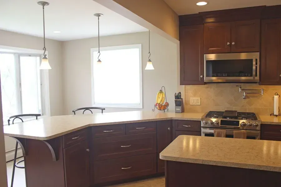 Peninsula with oversized drawers